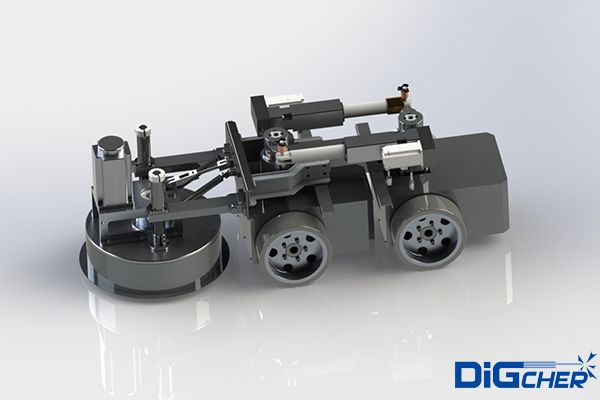 機(jī)器人采用四輪驅(qū)動(dòng),負載能力強,可在在垂直麵及天花板(bǎn)麵(miàn)任意行走;電機(jī)驅(qū)動,具有穩(wěn)定可靠的立麵吸附措施;機器人前端的毛刷(shuā)盤負責清理和回收模板表麵的粉塵和殘渣。