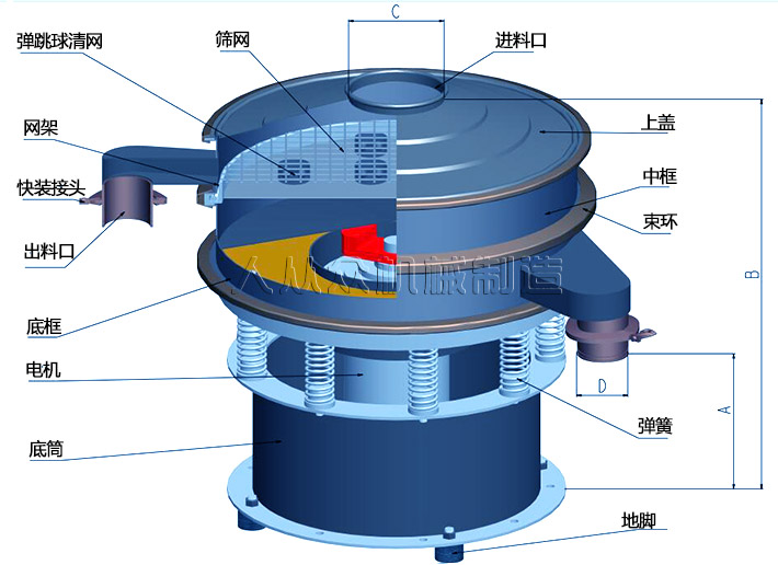 塑料粉末旋振篩工作原理: