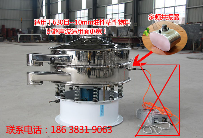 易結球,有粘性60目以(yǐ)細物料現在多采用超聲波清網。由於超聲波為高頻低振幅(固定頻率),部(bù)分物(wù)料存在堵網、卡孔、結球無法破球(qiú)等多種問題,無法使物料徹底篩分。比60目粗的物料(liào)超聲波無法使用(60目篩網絲徑為(wéi)0.125mm,篩網漲緊後超聲波的(de)振幅無法通過振環使篩網產生共振)。