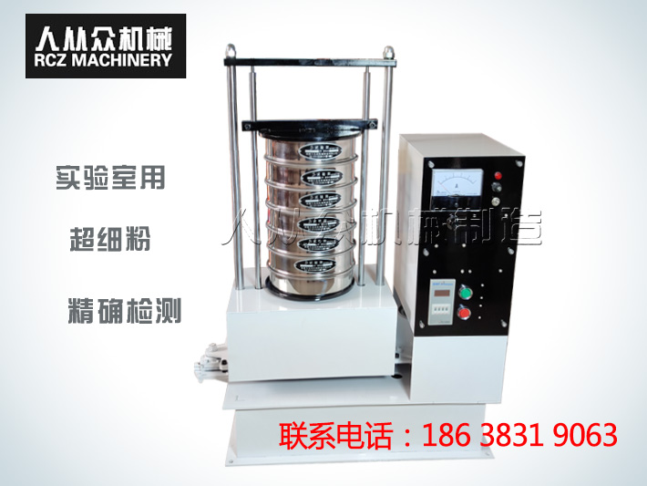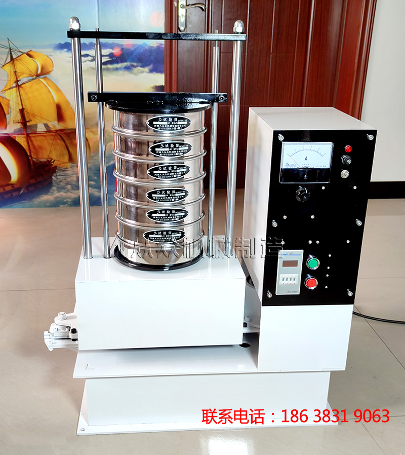 磁懸浮式振動篩通電後電磁裝置形成磁場,起振(zhèn)裝置懸浮(fú)在磁場中間,形成了上下高頻振動,再通過底部托盤傳導到安放在托盤上的一套(tào)從粗到細(xì)排列的篩具上,使得實驗篩、分樣篩中的物料上下、左右往返振動及運動,使每層實驗篩、分樣篩內隻留下相同粒度的物料,達到(dào)了不同粒度的分離。