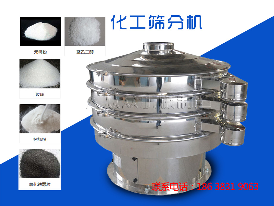 化工(gōng)振動(dòng)篩是篩(shāi)麵直徑為400-2000mm的篩(shāi)分(fèn)設備,常被稱為篩分機、篩粉機、振蕩篩等,它(tā)采用上、下兩端安(ān)裝有偏心重錘的(de)立式振動電機作為(wéi)激振源,將電機旋轉而來的水平、垂(chuí)直(zhí)、傾斜的三次元運動傳給篩麵,作用於物料。