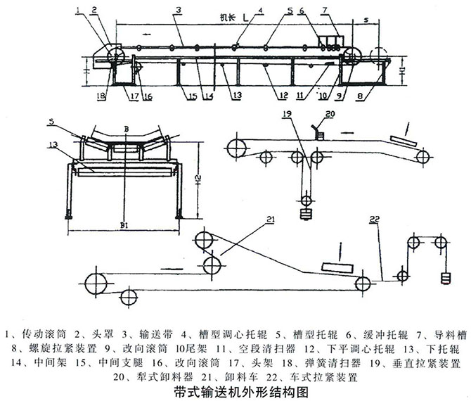 TD75型通用固定帶式輸(shū)送(sòng)機的結構:
