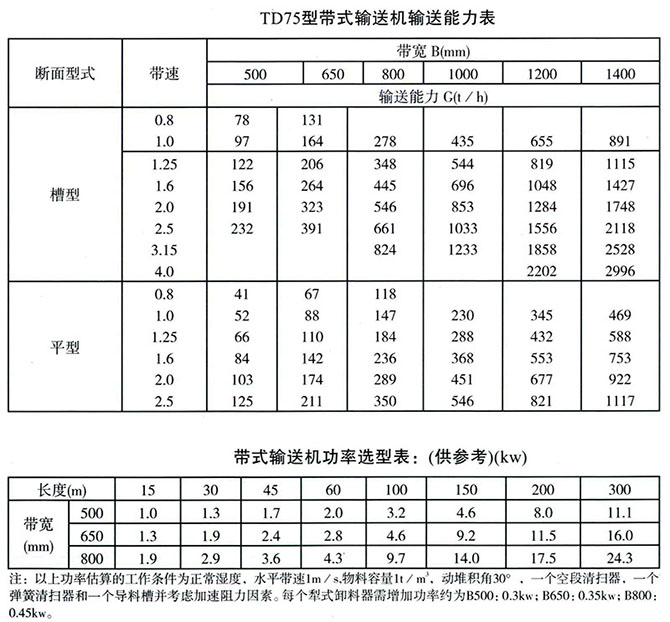 TD75型通用固定帶式輸送機由於輸(shū)送量(liàng)大,結構簡單,維(wéi)護方便,成本低,通用性強等優點,而被廣泛地應用在冶金、礦山、煤(méi)炭、港口、交通、水電、化(huà)工等部門,進行裝車、裝船、轉載或堆積各種常溫狀(zhuàng)態的鬆散密(mì)度為500~2500kg/m3各種散狀物料或(huò)成件(jiàn)物品。輸送(sòng)機的工作環境溫度一般在-10℃-+40℃之間,要求物料溫度不超過70℃;耐熱橡膠帶可輸送120℃以下的高(gāo)溫物料。物料溫度更高時不宜采用膠帶輸送機。當輸送具(jù)有(yǒu)酸性堿性油類物質和有機溶劑等成分的物料時,需采用耐油、耐酸堿的橡膠帶或塑料帶。帶式輸送機的帶寬有六種:500、650、800、1000、1200和1400mm。用戶可根據帶式輸(shū)送機的輸(shū)送(sòng)高度,物料的種類、容量、輸送量、輸(shū)送長度等諸因素通過計算確定輸送機的布局以及所選(xuǎn)用的膠帶(dài)寬度、帆布層數和膠帶厚(hòu)度。
