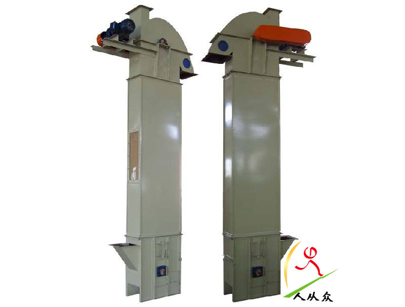 HL型鬥式提升機,由(yóu)運動(dòng)部分(料鬥與牽引鏈條)、帶(dài)有傳(chuán)動鏈輪的上部區段、帶有(yǒu)拉緊輪的(de)下(xià)部區段、中間機殼、驅動裝置、逆止製動裝置等組成。提升機的(de)料鬥為間斷式布置,利用“掏取法”進行裝載,“離心投料法”卸料。本提升機的牽引機構是兩根環(huán)形鏈條(tiáo)。
