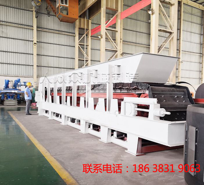 板式給料機有輕型、中型、重型三種,其至大向上傾角20度。分別適用(yòng)於沿水平或傾(qīng)斜的線段由貯料倉(cāng)向破(pò)碎機輸送機或其它(tā)工作機械與容器連續均勻地配(pèi)給和輸(shū)送堆積密度分別為:輕型機為(wéi)不大於1200kg/m3,塊重不超過140kg,溫度不高於350℃的各種塊狀(zhuàng)和粒狀(zhuàng)、散狀物料;中型機為不大於2400 kg/m3,塊重不超過500kg,溫度不高於400℃的各種鬆散物料;重型板式給料機(jī)規格有槽寬1000、1250、1500、2000、2500、3150毫米,長度為420米,多(duō)種型號的(de)設定可滿足不同環境下的使用(yòng)情況。