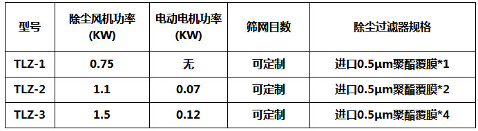 | 型號 | TLZ-1等多種型號,可根據實際產能具體選型 |