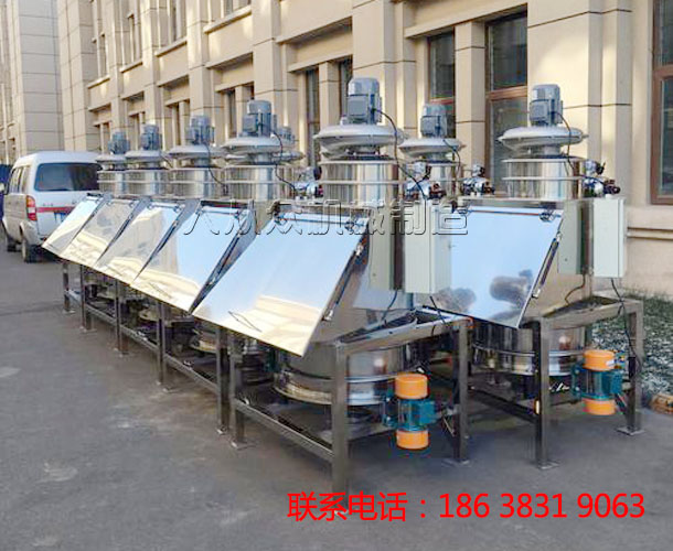 當小袋物料需解袋並倒入下一道工序時,隻需(xū)人工直接(jiē)拆包後投入到該係統,投料時所產生的物(wù)料粉塵由集塵風機進行收集。物料通過振動(dòng)篩(安(ān)全篩網(wǎng))可將(jiāng)大塊物料和異物攔截(jié),從而保證符合要求的成品(合格物料(liào))進入下道工藝。該設備適用於(yú)食品、製藥、化工、冶金行業中小(xiǎo)袋(dài)物料的拆(chāi)包、投放(fàng)、篩分和卸料,特別適用於粉料人工投料和預篩分,拆包時(shí)由於集(jí)塵風機的作用,可以避免物料粉塵到處飛揚。
